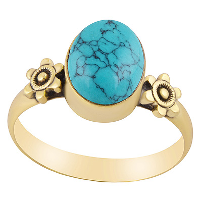 Home | Fashion Rings | Brass Gemstone Rings | Alluring Flower Around Turquoise Oval Shape Solid Brass Ring