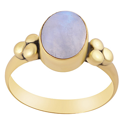Stunning Handwork Around Rainbow Moonstone Oval Shape Solid Brass Ring