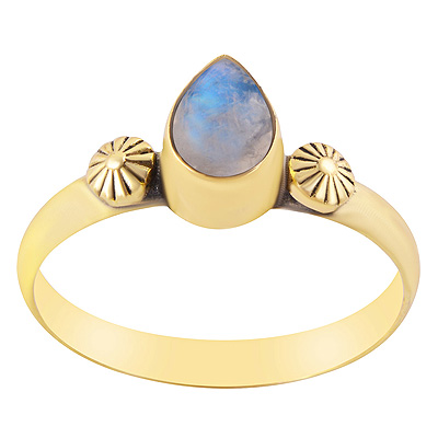 Home | Fashion Rings | Brass Gemstone Rings | Authentic Work Around Rainbow Moonstone Pear Shape Solid Brass Ring