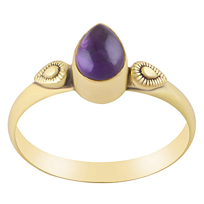 Stunning Textured Leaf work Around Amethyst Pear Shape Solid Brass Ring