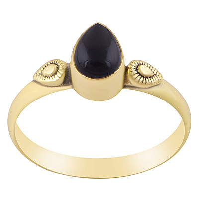 Stunning Textured Leaf work Around Black Onyx Pear Shape Solid Brass Ring
