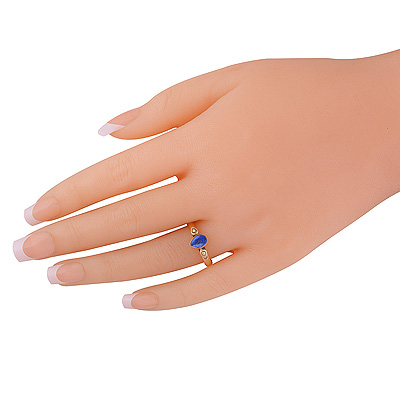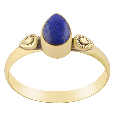 Stunning Textured Leaf work Around Lapis Pear Shape Solid Brass Ring