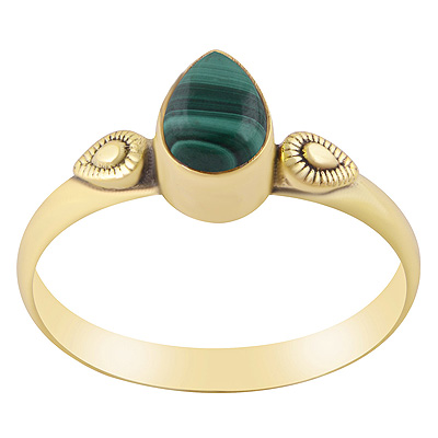 Stunning Textured Leaf work Around Malachite Pear Shape Solid Brass Ring