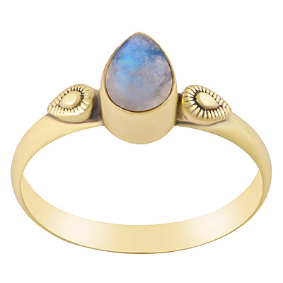 Home | Fashion Rings | Brass Gemstone Rings | Stunning Textured Leaf work Around Rainbow Moonstone Pear Shape Solid Brass Ring