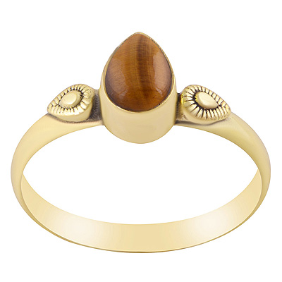 Stunning Textured Leaf work Around Tiger's Eye Pear Shape Solid Brass Ring