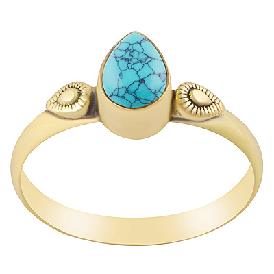 Stunning Textured Leaf work Around Turquoise Pear Shape Solid Brass Ring