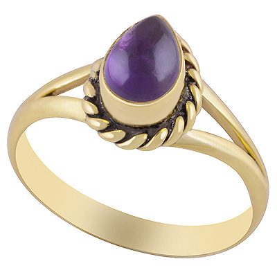 Beautiful Twisted Wire Work Around Amethyst Pear Shape Solid Brass Ring