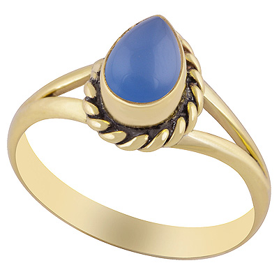 Beautiful Twisted Wire Work Around Blue Chalcedony Pear Shape Solid Brass Ring