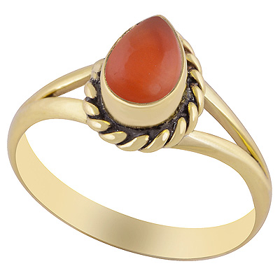 Beautiful Twisted Wire Work Around Carnelian Pear Shape Solid Brass Ring