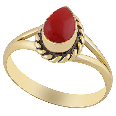 Beautiful Twisted Wire Work Around Coral Pear Shape Solid Brass Ring
