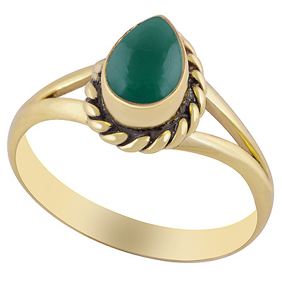 Beautiful Twisted Wire Work Around Green Onyx Pear Shape Solid Brass Ring