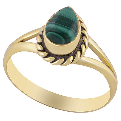 Beautiful Twisted Wire Work Around Malachite Pear Shape Solid Brass Ring