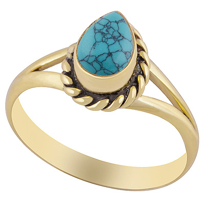 Beautiful Twisted Wire Work Around Blue Chalcedony Pear Shape Solid Brass Ring