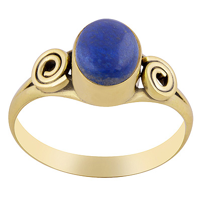 Home | Fashion Rings | Brass Gemstone Rings | Beautiful Handcrafted Work Around Lapis Oval Shape Solid Brass Ring