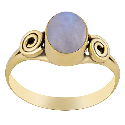 Home | Fashion Rings | Brass Gemstone Rings | Beautiful Handcrafted Work Around Rainbow Moonstone Oval Shape Solid Brass Ring