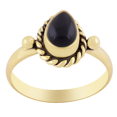 Home | Fashion Rings | Brass Gemstone Rings | Authentic Wire & Rawa Work Around Black Onyx Pear Shape Solid Brass Ring
