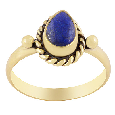 Home | Fashion Rings | Brass Gemstone Rings | Authentic Wire & Rawa Work Around Lapis Pear Shape Solid Brass Ring