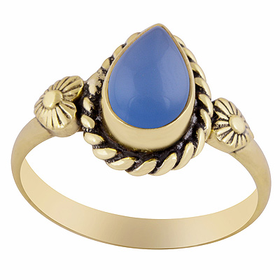 Home | Fashion Rings | Brass Gemstone Rings | Gorgeous Handwork Around Blue Chalcedony Pear Shape Solid Brass Ring