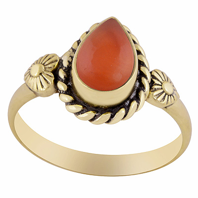 Gorgeous Handwork Around Carnelian Pear Shape Solid Brass Ring