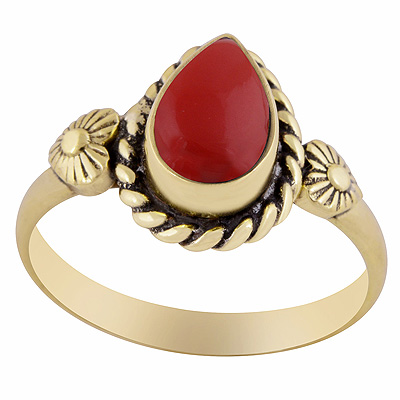 Home | Fashion Rings | Brass Gemstone Rings | Gorgeous Handwork Around Coral Pear Shape Solid Brass Ring