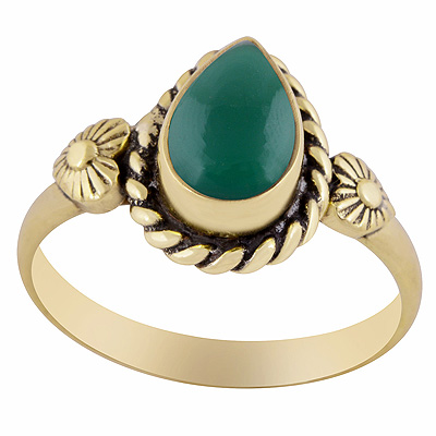 Gorgeous Handwork Around Green Onyx Pear Shape Solid Brass Ring
