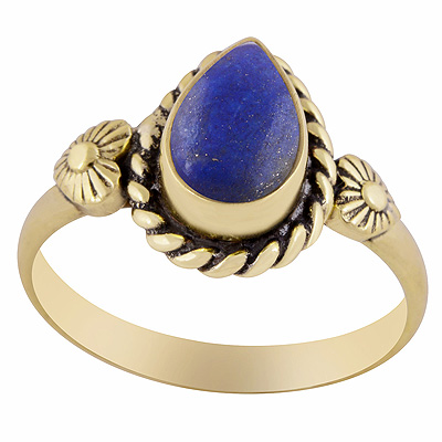Gorgeous Handwork Around Lapis Pear Shape Solid Brass Ring