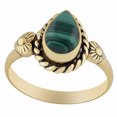Gorgeous Handwork Around Malachite Pear Shape Solid Brass Ring