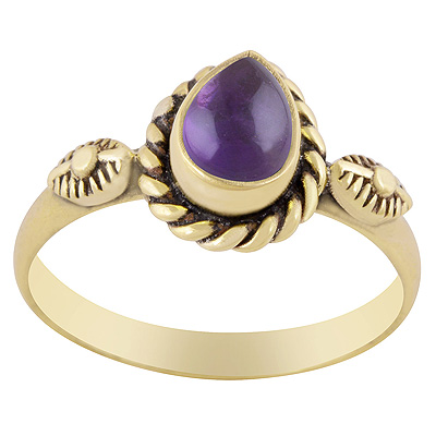Stunning Textured Leaf Around Amethyst Pear Shape Solid Brass Ring