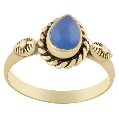 Stunning Textured Leaf Around Blue Chalcedony Pear Shape Solid Brass Ring