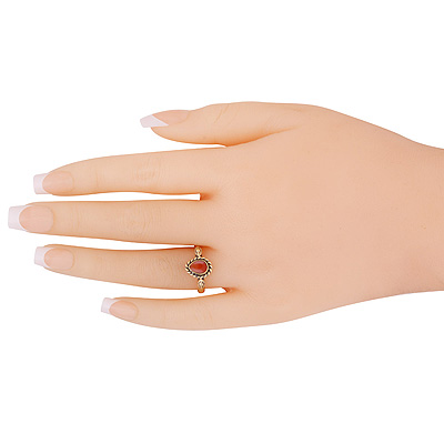 Stunning Textured Leaf Around Coral Pear Shape Solid Brass Ring