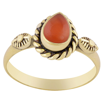 Stunning Textured Leaf Around Carnelian Pear Shape Solid Brass Ring