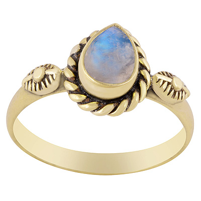 Home | Fashion Rings | Brass Gemstone Rings | Stunning Textured Leaf Around Rainbow Moonstone Pear Shape Solid Brass Ring
