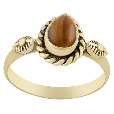 Stunning Textured Leaf Around Tiger's Eye Pear Shape Solid Brass Ring