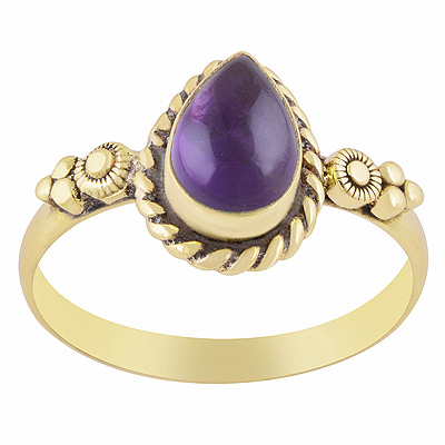 Home | Fashion Rings | Brass Gemstone Rings | Beautiful Handcrafted Work Around Amethyst Pear Shape Solid Brass Ring