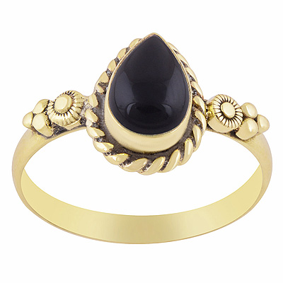 Home | Fashion Rings | Brass Gemstone Rings | Beautiful Handcrafted Work Around Black Onyx Pear Shape Solid Brass Ring
