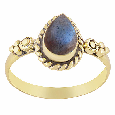 Home | Fashion Rings | Brass Gemstone Rings | Beautiful Handcrafted Work Around Labradorite Pear Shape Solid Brass Ring