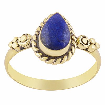 Home | Fashion Rings | Brass Gemstone Rings | Beautiful Handcrafted Work Around Lapis Pear Shape Solid Brass Ring