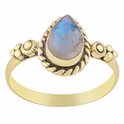 Home | Fashion Rings | Brass Gemstone Rings | Beautiful Handcrafted Work Around Rainbow Moonstone Pear Shape Solid Brass Ring