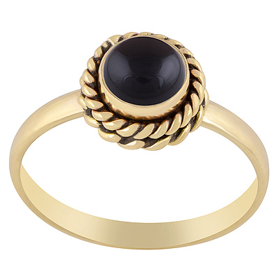 Stunning Double Twisted Wire Work Around Black Onyx Round Shape Solid Brass Ring