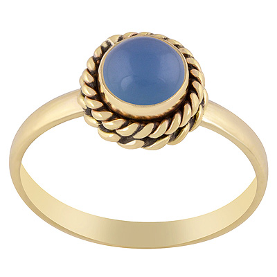 Stunning Double Twisted Wire Work Around Blue Chalcedony Round Shape Solid Brass Ring