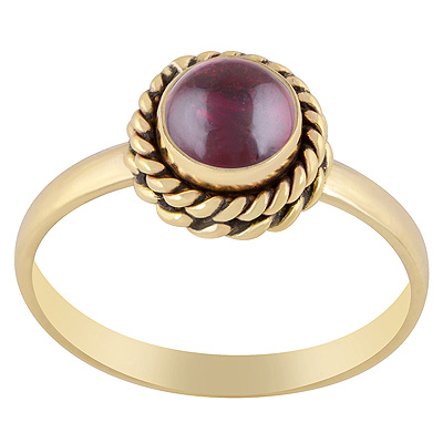 Stunning Double Twisted Wire Work Around Garnet Round Shape Solid Brass Ring