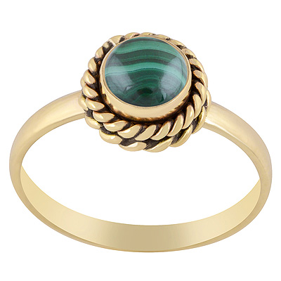 Stunning Double Twisted Wire Work Around Malachite Round Shape Solid Brass Ring