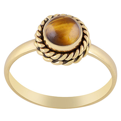 Stunning Double Twisted Wire Work Around Tiger's Eye Round Shape Solid Brass Ring