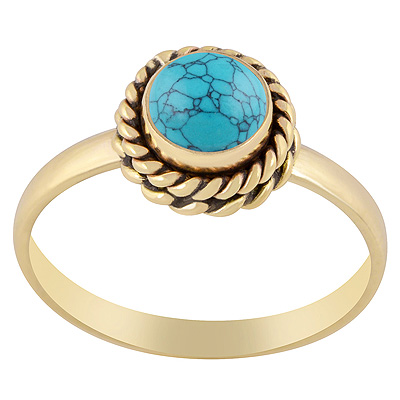 Stunning Double Twisted Wire Work Around Turquoise Round Shape Solid Brass Ring