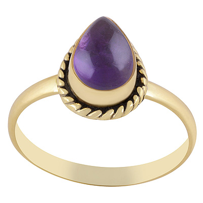 Home | Fashion Rings | Brass Gemstone Rings | Classic Twisted Wire Work Around Amethyst Pear Shape Solid Brass Ring