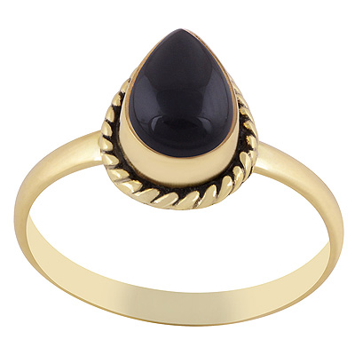 Home | Fashion Rings | Brass Gemstone Rings | Classic Twisted Wire Work Around Black Onyx Pear Shape Solid Brass Ring