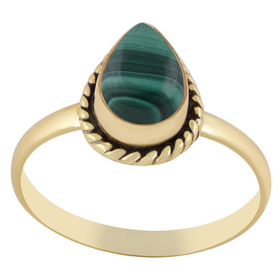 Home | Fashion Rings | Brass Gemstone Rings | Classic Twisted Wire Work Around Malachite Pear Shape Solid Brass Ring