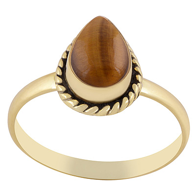 Home | Fashion Rings | Brass Gemstone Rings | Classic Twisted Wire Work Around Tiger's Eye Pear Shape Solid Brass Ring