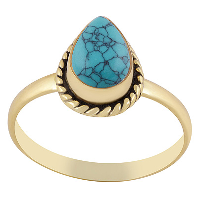 Home | Fashion Rings | Brass Gemstone Rings | Classic Twisted Wire Work Around Turquoise Pear Shape Solid Brass Ring