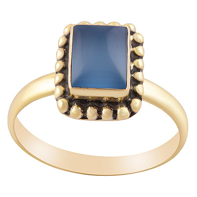 Home | Fashion Rings | Brass Gemstone Rings | Gorgeous Rawa Work Around Blue Chalcedony Rectangle Shape Solid Brass Ring